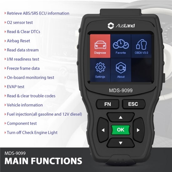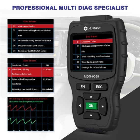 AUSLAND MDS-9099 Multi-Diag Specialist is not limited to reading fault codes on vehicle systems, it also features ECU control, ECU programming and guided trouble shooting.